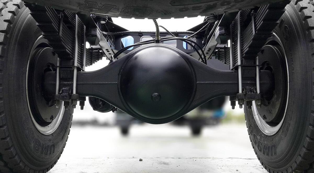 Cầu sau khả năng chịu tải lớn (10 tấn), tỉ số truyền cầu i = 5,833 giúp xe vận hành mạnh mẽ.